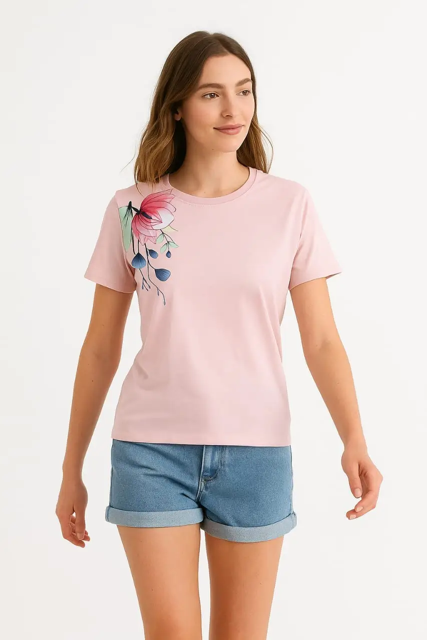Perfect for casual outings, shopping trips, travel, or everyday wear, this T-shirt adds a touch of soft floral beauty to your wardrobe while maintaining a timeless and stylish appeal. 🌸✨